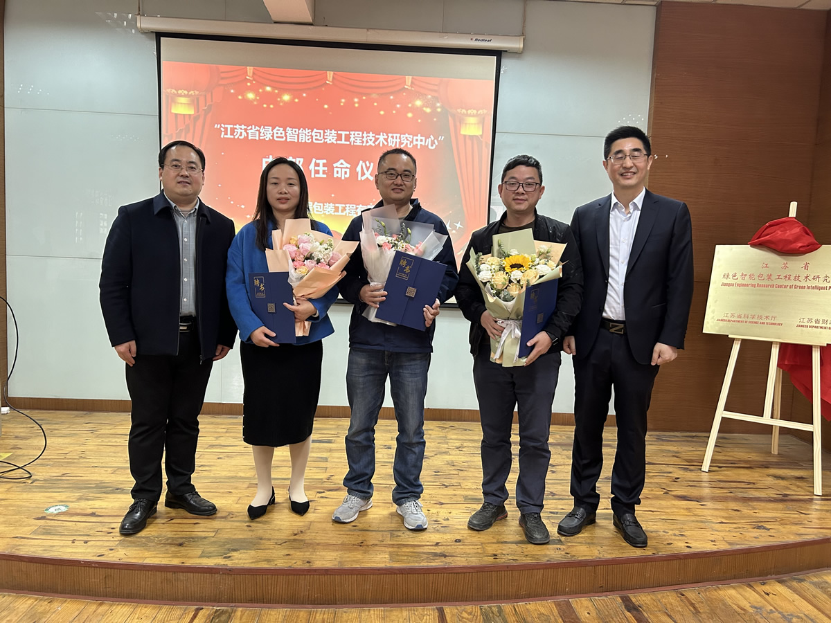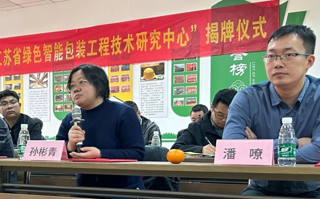 隨后徐穎總經理與行業專家及教授們共同為“江蘇省綠色智能包裝工程技術研究中心”揭牌,并為專家教授團隊及研究中心主要負責人授聘書。